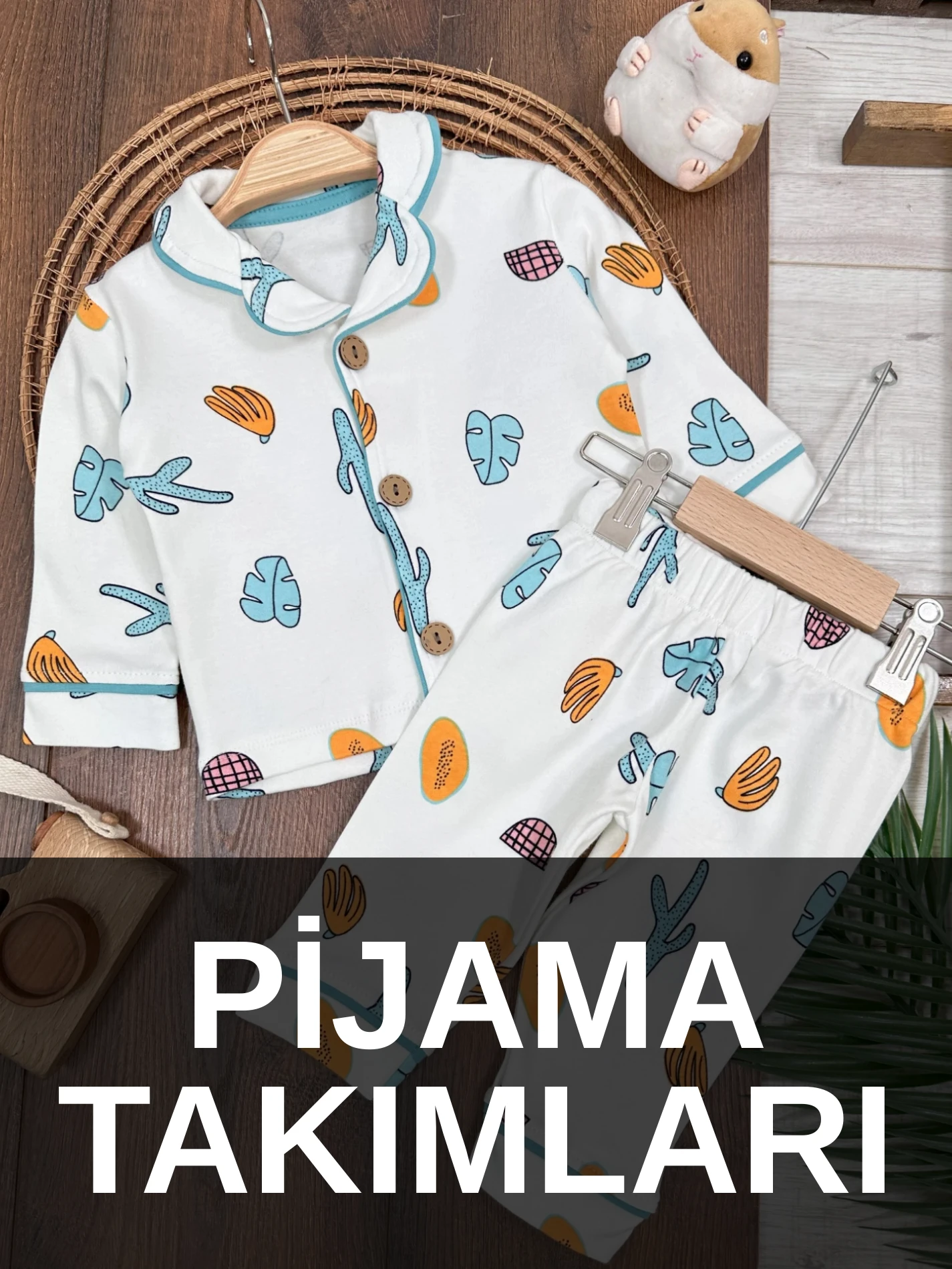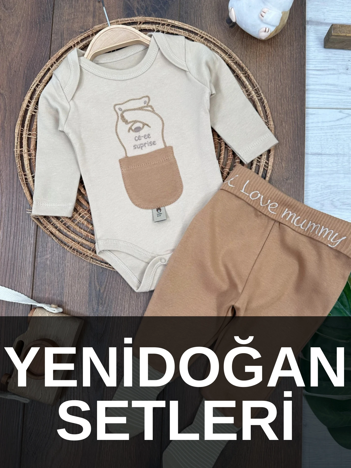 3 İplik İçi Pamuklu Çam Baskılı Omuzdan Çıtçıtlı Kışlık Unisex Bebek Takım