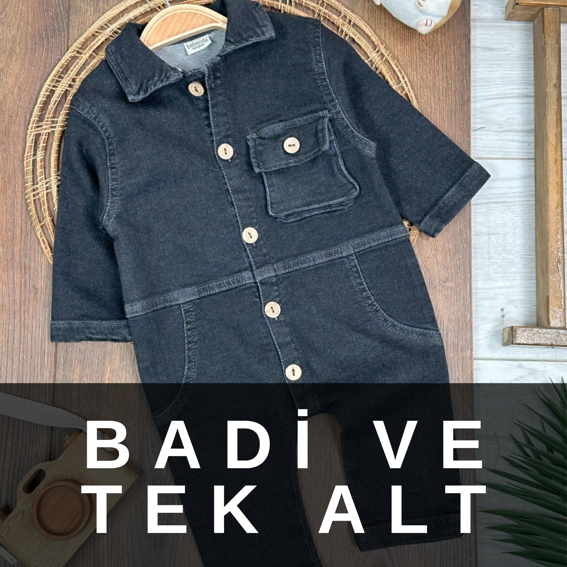 Salopet Şapkalı Cep Detaylı Likralı Kot Salopet Erkek Bebek Takım