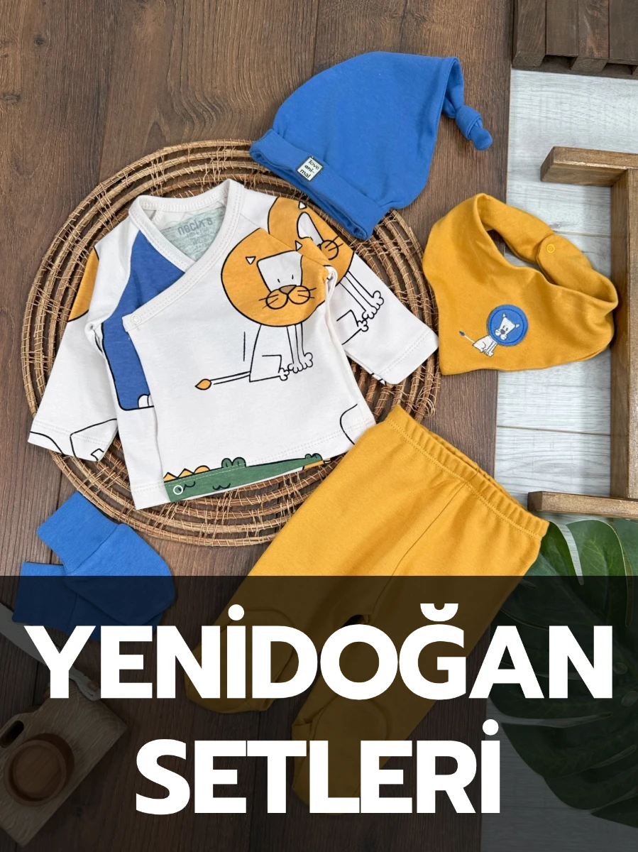 Patikli Safari Şapkalı Kulaklı Ayıcık Baskılı Badili Yazlık 4lü Salopet Erkek Bebek Takım - HARDAL